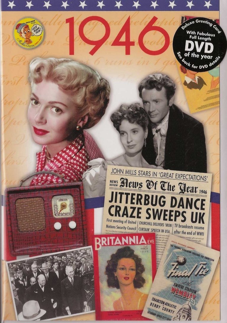 Dive into the time capsule of ‘The Time of Your Life – 1946’, a DVD Greeting Card, creating an ideal gift for couples celebrating their 79th anniversary in 2024! This combination of a nostalgic DVD and a greeting card is a remarkable journey back to 1946.