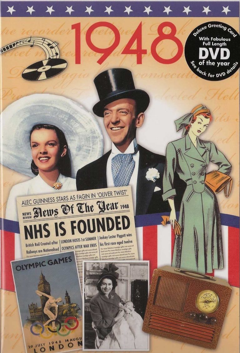 Dive into the time capsule of ‘The Time of Your Life – 1948’, a DVD Greeting Card, creating an ideal gift for couples celebrating their 77th anniversary in 2024! This combination of a nostalgic DVD and a greeting card is a remarkable journey back to 1948.