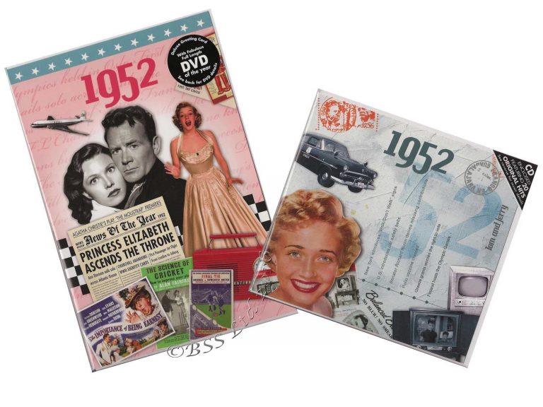 Gift the perfect time capsule on their 73rd anniversary in 2024 with our unique CD & DVD Gift Set featuring the unforgettable music and news of 1952. These bi-fold cards, filled with vintage memories, create an anniversary present like no other.