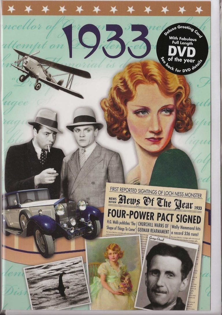 Dive into the time capsule of ‘The Time of Your Life – 1933’, a DVD Greeting Card, creating an ideal gift for couples celebrating their 92nd anniversary in 2024! This combination of a nostalgic DVD and a greeting card is a remarkable journey back to 1933.