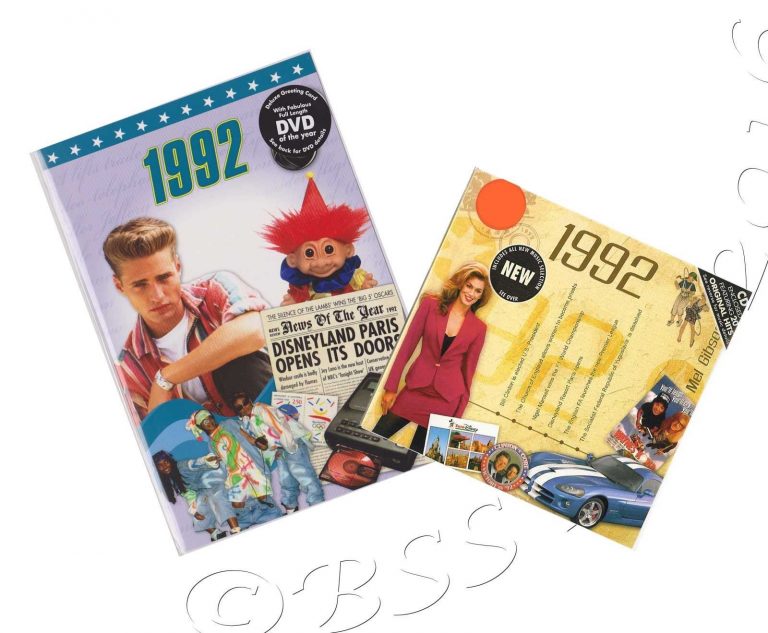 Gift the perfect time capsule on their 33rd anniversary in 2024 with our unique CD & DVD Gift Set featuring the unforgettable music and news of 1992. These bi-fold cards, filled with vintage memories, create an anniversary present like no other.