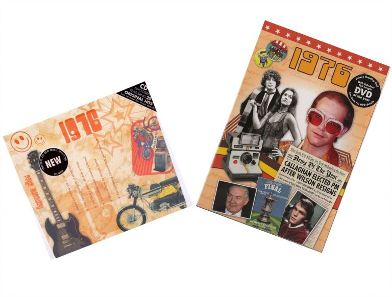 Gift the perfect time capsule on their 49th anniversary in 2024 with our unique CD & DVD Gift Set featuring the unforgettable music and news of 1976. These bi-fold cards, filled with vintage memories, create an anniversary present like no other.