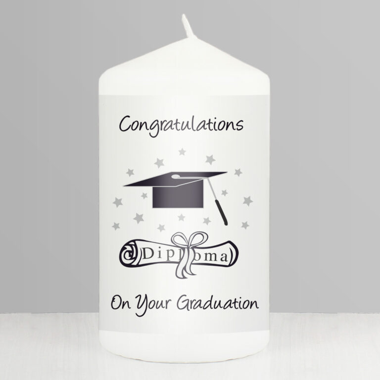 Ignite Their Success with our Graduation Pillar Candle. Commemorate their remarkable journey with our Graduation Pillar Candle. Emblazoned with ‘Congratulations On Your Graduation’, this keepsake is perfect for celebrating a momentous accomplishment.