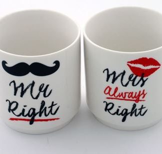 Mr Right and Mrs Always Right Lippy and ‘stached Stacking Mugs
